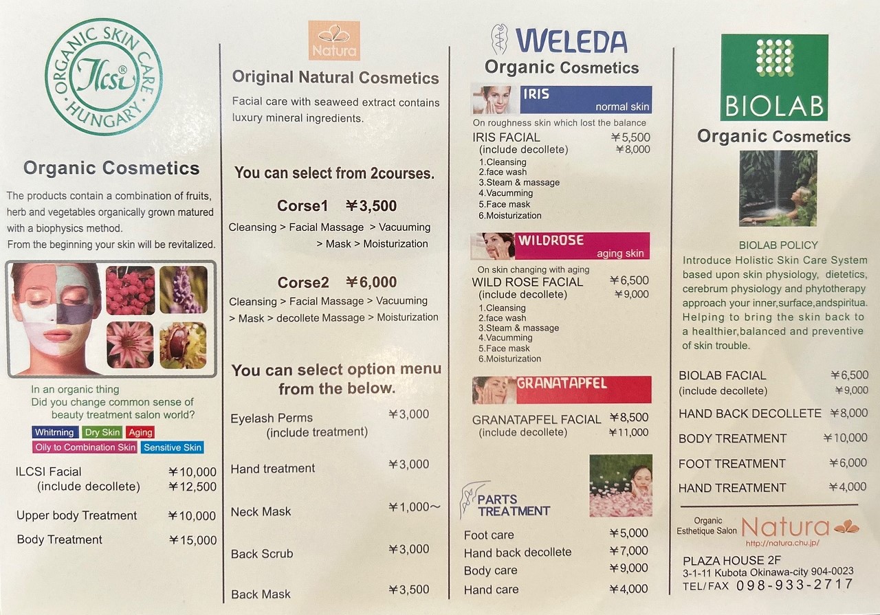 - Naturaでは、効果のある施術をむりなく通えるサロンを目指しています。 誰でも気軽に通える価格設定で皆様をお待ち致しております。 エステに行って必要以上に施術をすすめられたり、高価な化粧品を買わされたり、 ローンの支払い方法を強要されたり、そういう事は絶対に致しません。 おサイフにやさしい1回ごとの料金システムです。